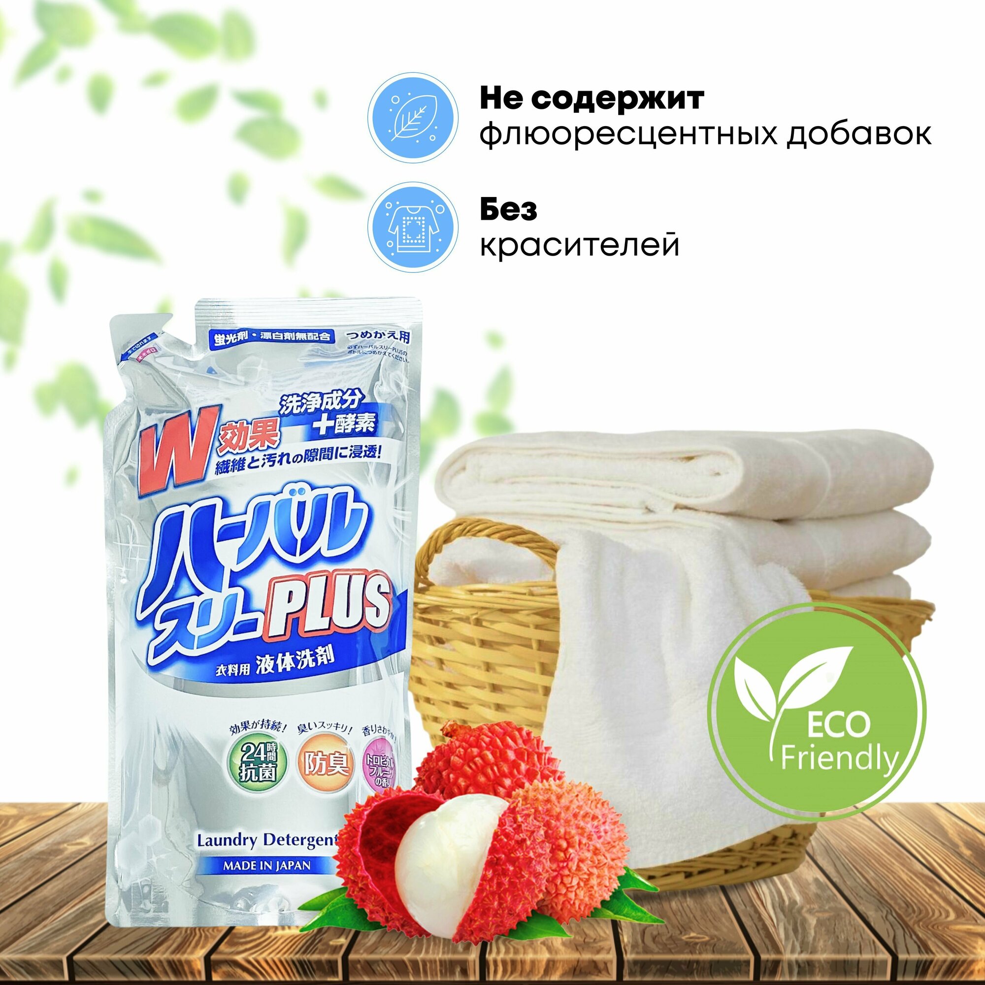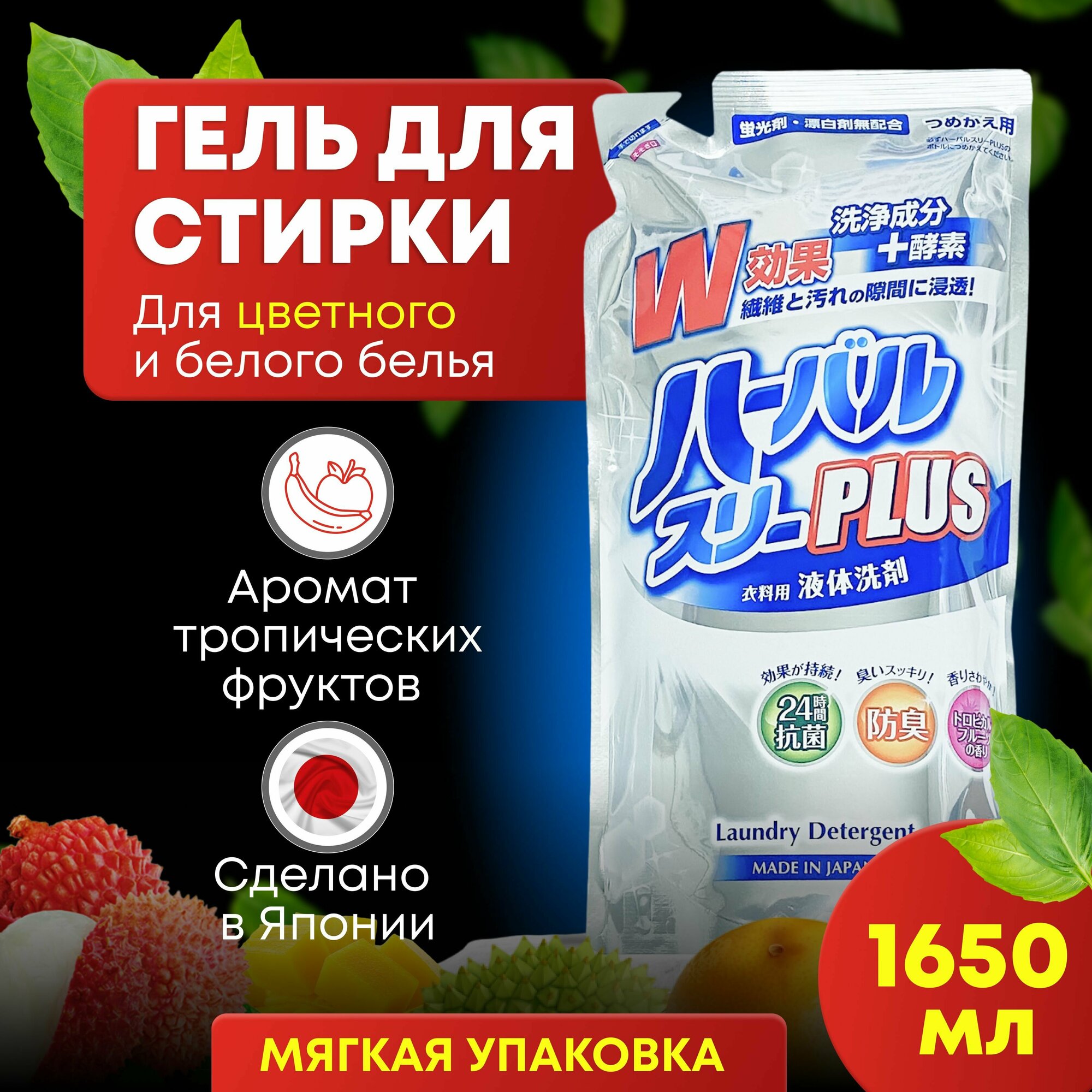 Mitsuei Гель для стирки Herbal Three PLUS Дезодорирующий для черного и цветного белья, аромат тропических фруктов, 1,65 кг. сменная упаковка