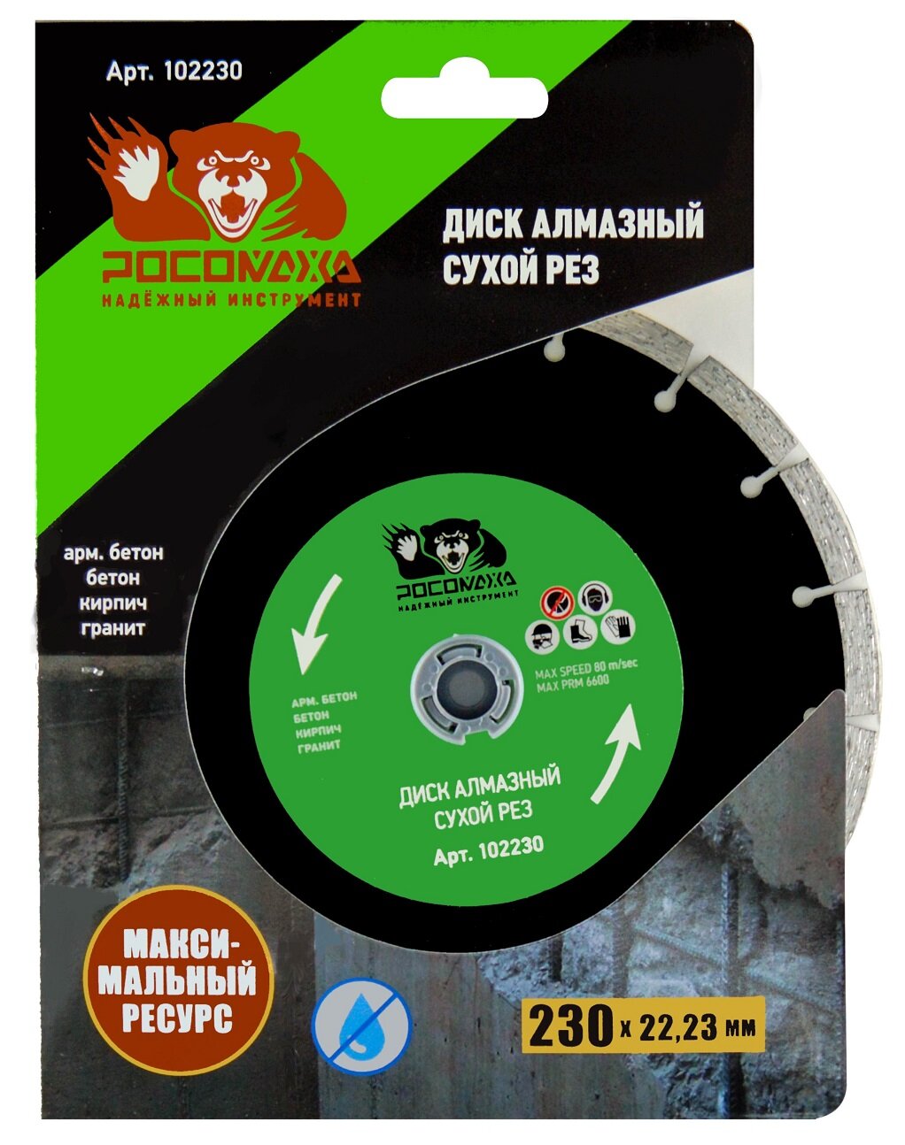 Росомаха Диск отрезной алмазный сухой рез 230x2,4 мм 102230 информация: