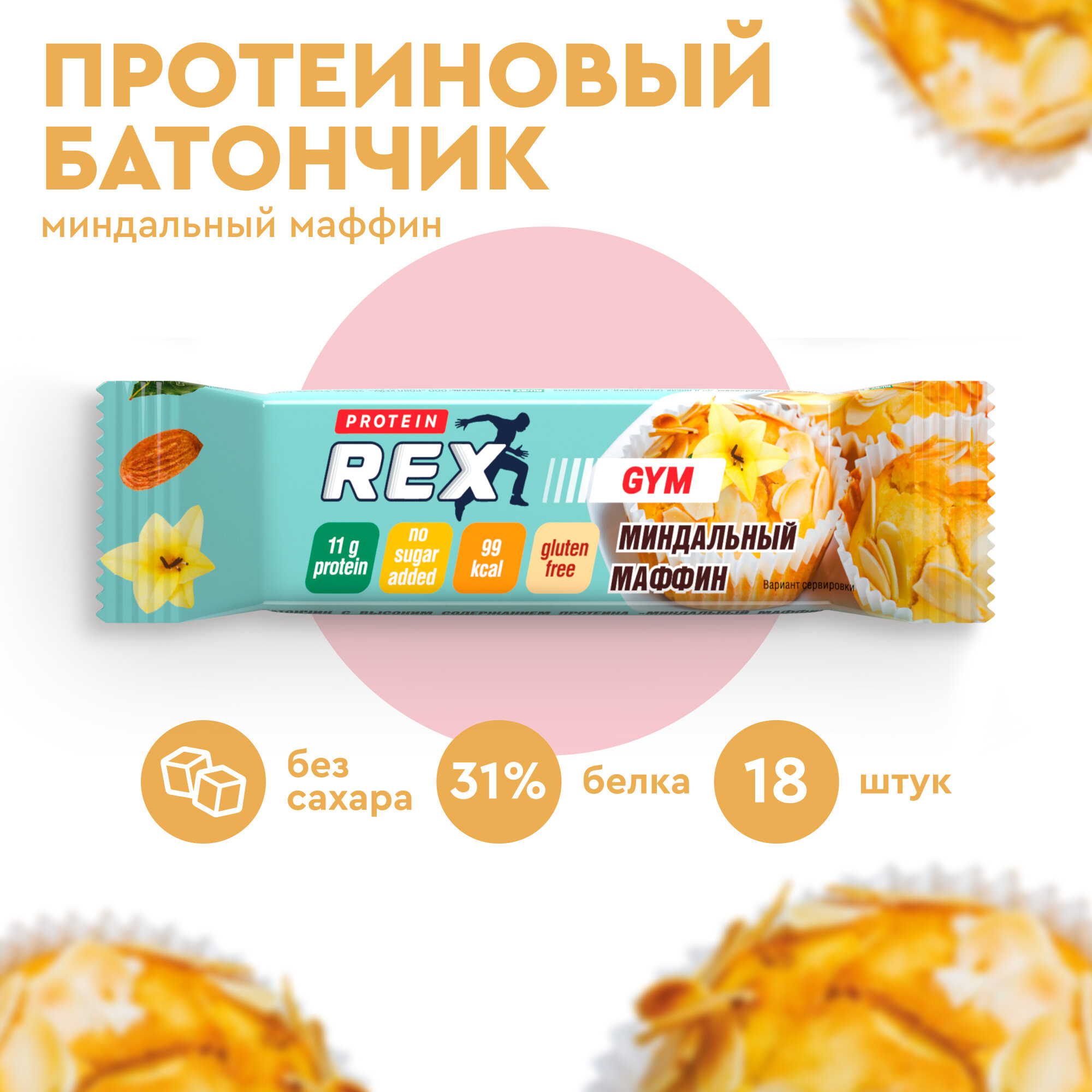10 цен на Протеиновые батончики без сахара ProteinRex LOW CARB низкокалорийные (миндальный маффин), 18 шт х 35 г, 99 ккал, ПП еда, спортивные батончики