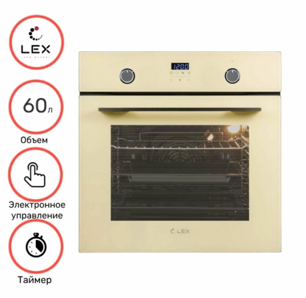 Духовой шкаф встраиваемый LEX EDM 077 C IV, 60 см, с конвекцией, механические ручки, объем 60 л, аналоговый таймер, телескопические направляющие.