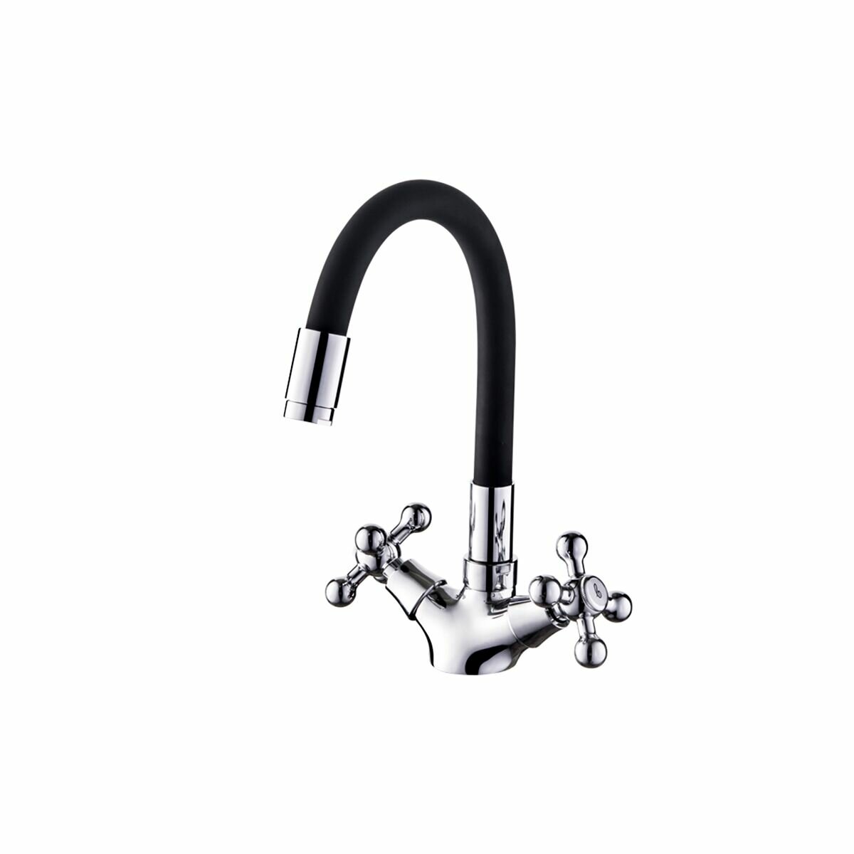 Смеситель кухня LEDEME , гибкий шланг, крест, чёрный, L1319-2 информация: