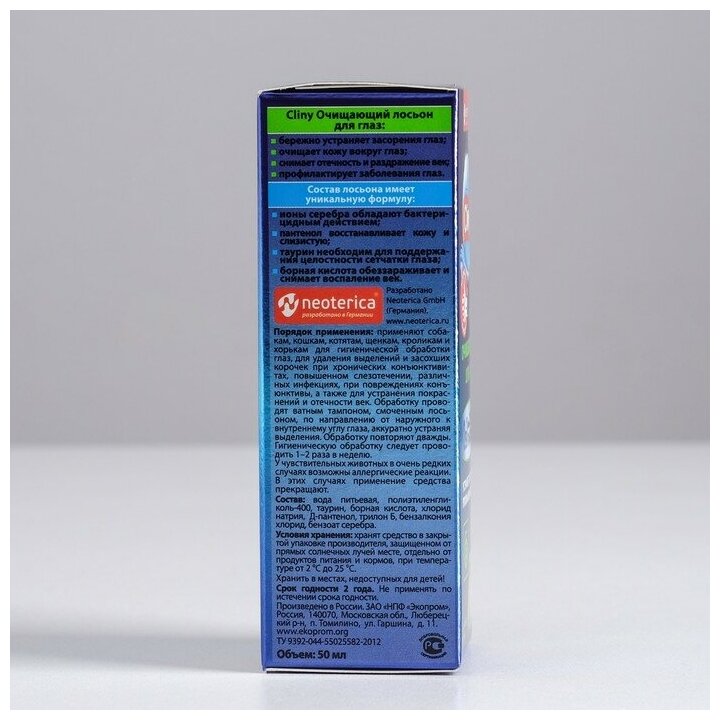 Лосьон Cliny (Neoterica) для глаз очищающий для кошек и собак , 50 мл , 122 г