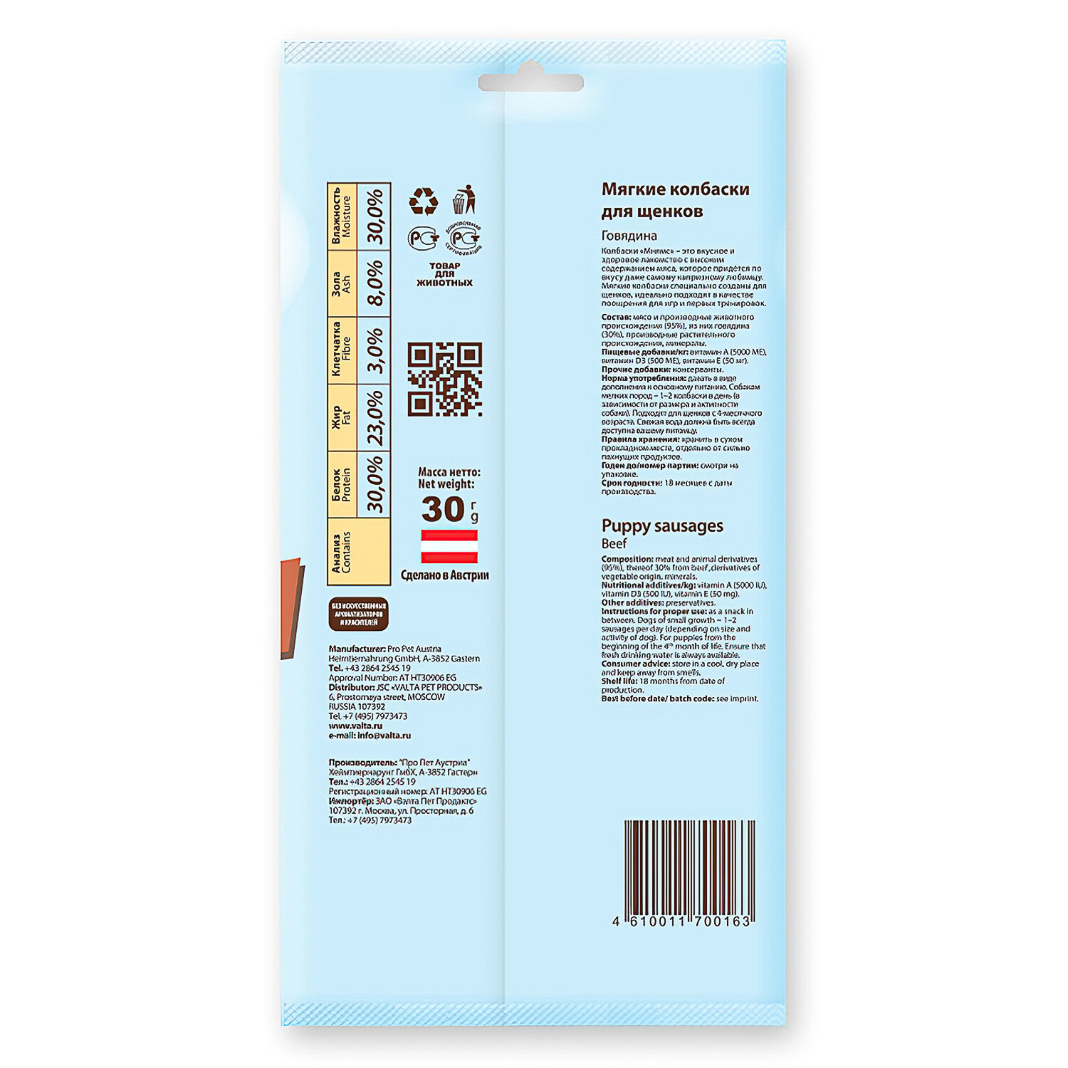 Мнямс лакомство Мягкие колбаски с говядиной для щенков - 30 г информация: