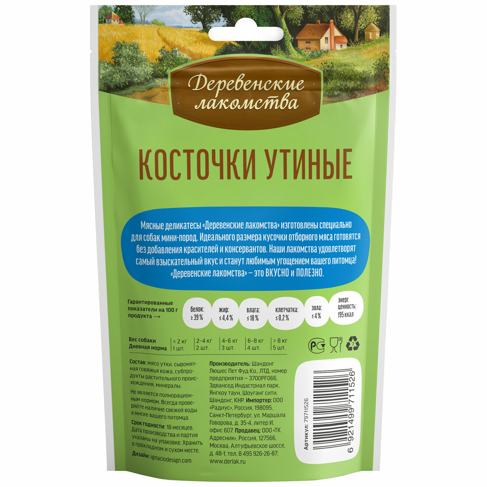Лакомство Деревенские лакомства "Косточки утиные" для собак мелких пород 55г 79711526