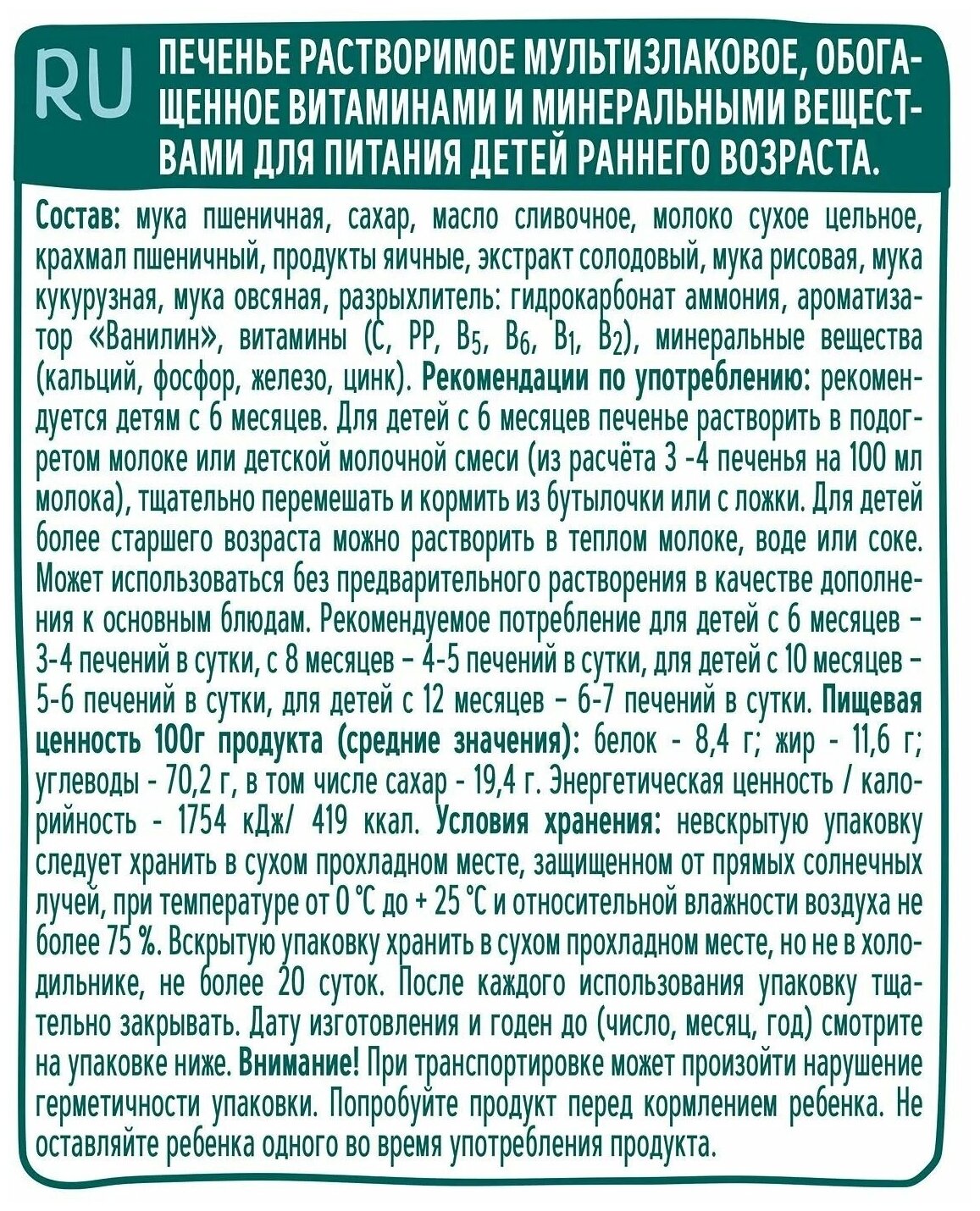 Печенье детское мультизлаковое ФрутоНяня с 6 месяцев 120 г информация: