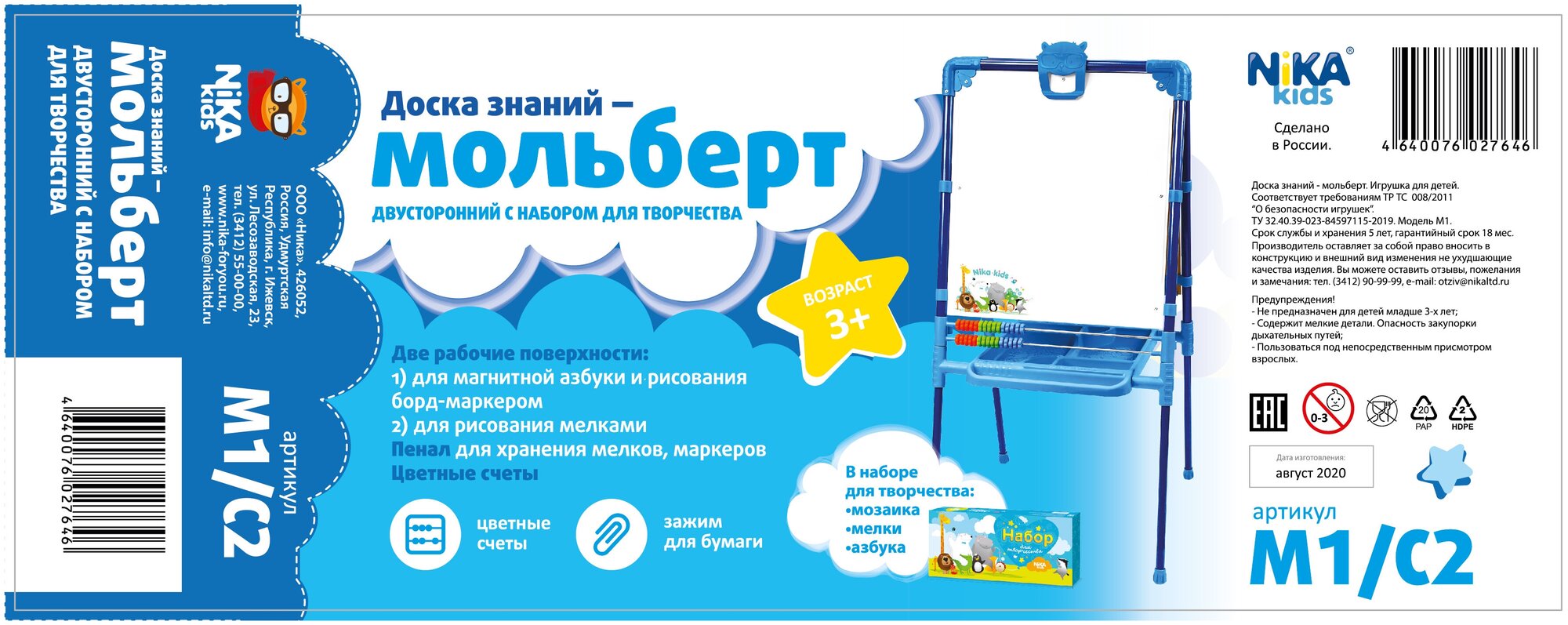 Мольберт двусторонний - Доска знаний, с набором для творчества (синий) М1/С2 .