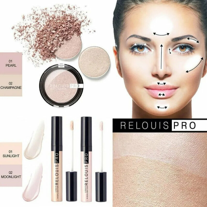 10 цен на RELOUIS Хайлайтер для лица PRO HIGHLIGHTER компактный тон 01 Pearl, 4г