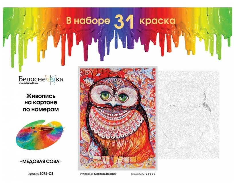 Медовая сова живопись на картоне 30*40см 30х40 Белоснежка 3074-CS