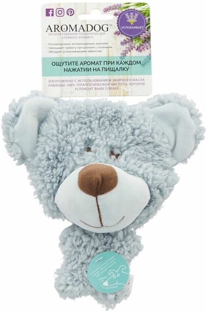 Мягкая Игрушка для собак Aromadog Big Head Мишка с эфирным маслом голубой 12 см
