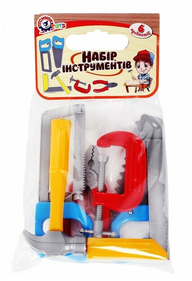 Игрушечный набор инструментов Т4005 Технок, 6 предметов, детские строительные инструменты, сюжетно-ролевые игрушки, пила 2 шт., плоскогубцы, молоток, информация: