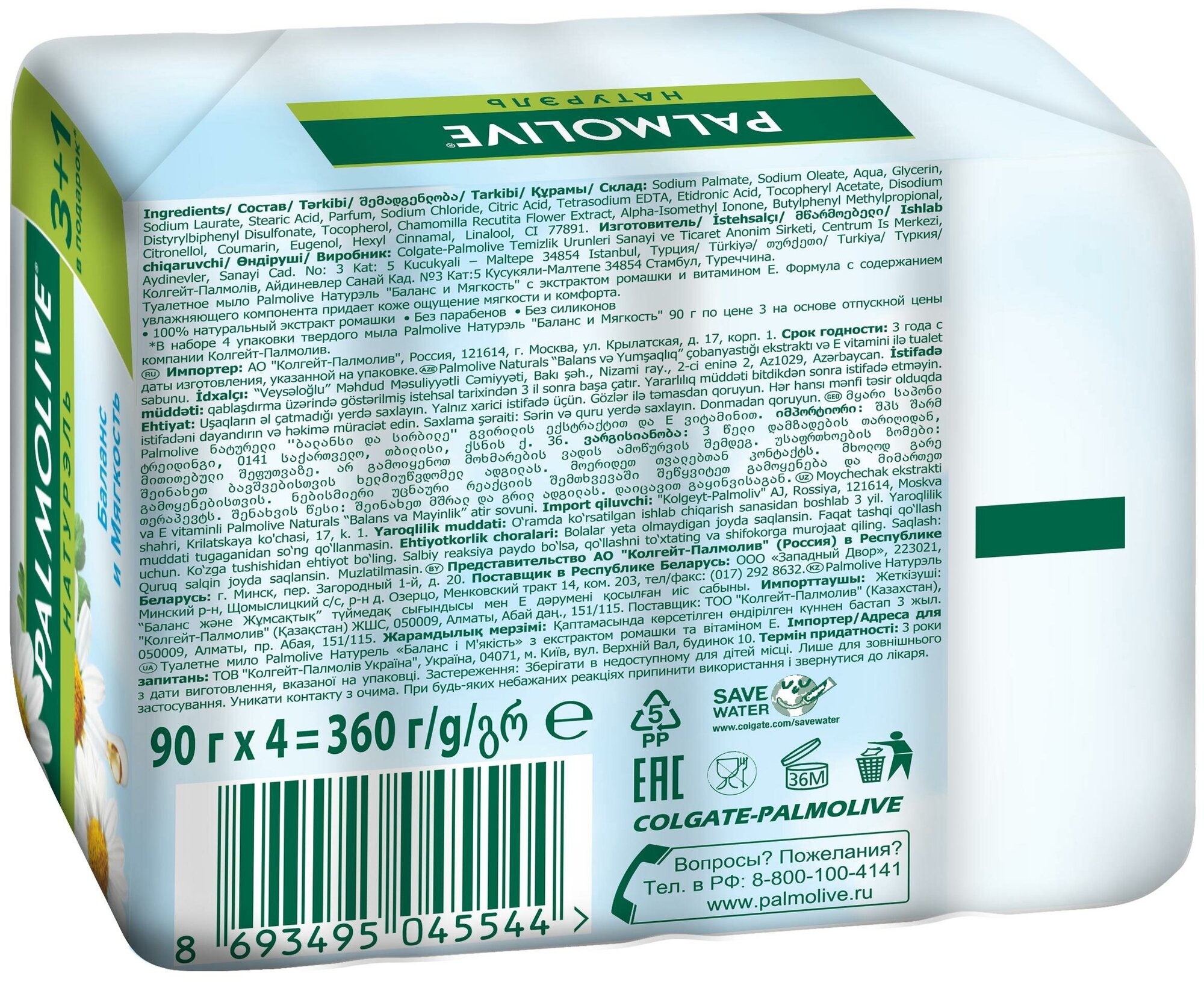 Отзывы на Colgate-Palmolive Palmolive (Палмолив)Натурэль Баланс и Мягкость туалетное мыло с экстрактом Ромашки и витамином Е, промоупаковка 4х90 г