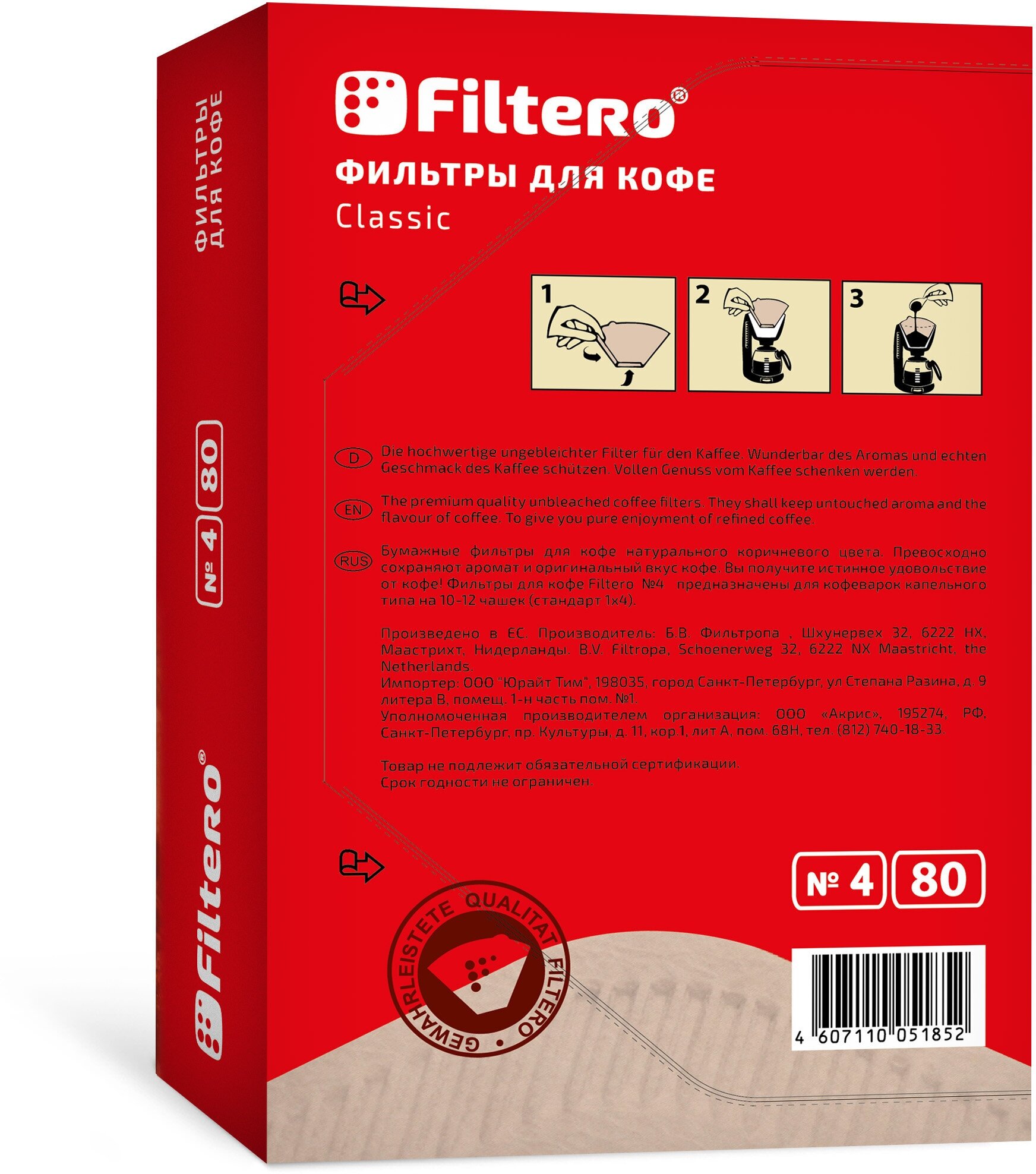 Комплект фильтров для кофе, кофеварки и кофемашин Filtero Classic №4, 80штук, неотбеленные