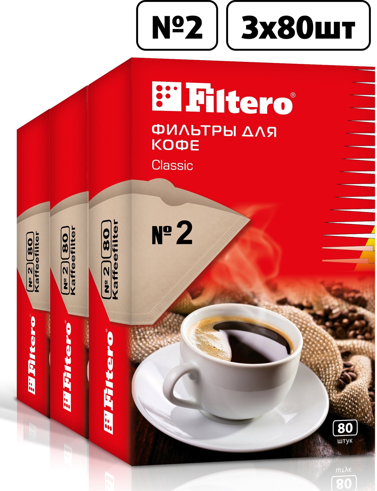 Фильтры для заваривания кофе Filtero Classic Размер №2, неотбеленные, 80 шт