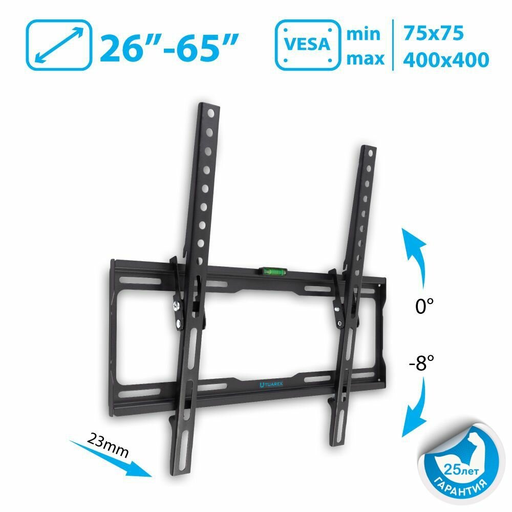 Кронштейн Tuarex OLIMP-114 black, настенный для TV 26"-65", угол наклона 0 -12, от стены 25мм, Vesa .