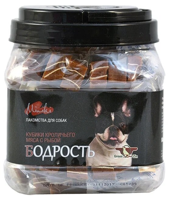 Лакомство Green Qzin Miniki Бодрость для собак маленьких пород кубики мяса кролика с сурими 630 гр (1 шт)