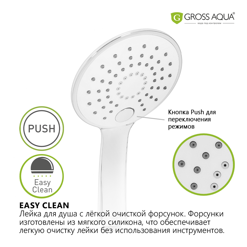 Отзывы на Лейка для душа 3 режима с кнопкой управления Gross Aqua Space Push, abs-пластик, хром, GA1400CW.