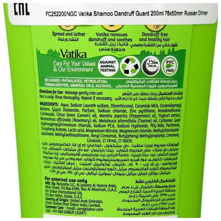 10 цен на Dabur Шампунь для волос Dabur Vatika Naturals Dandruff Guard, против перхоти, 200 мл