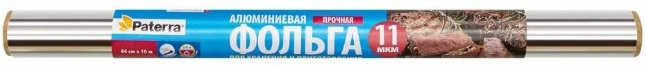 Фольга пищевая алюминиевая PATERRA, 44см х 10м,11 мкм, (209-028)