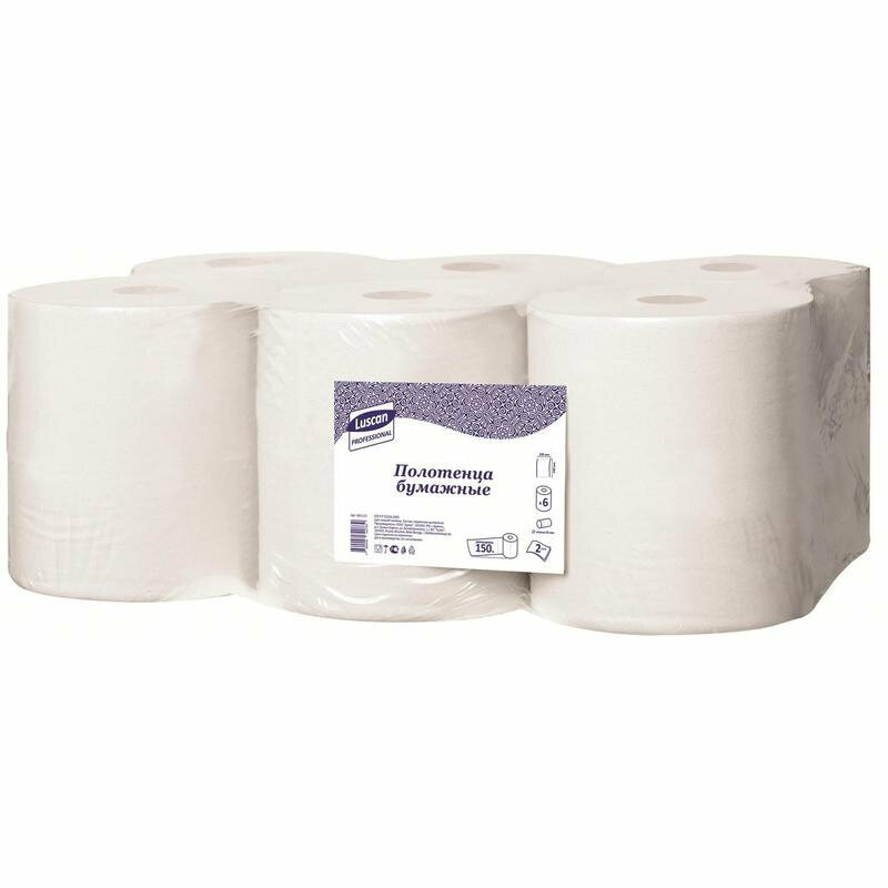 Полотенца бумажные Luscan Professional белые двухслойные с центральной вытяжкой 150 м 6 рул.