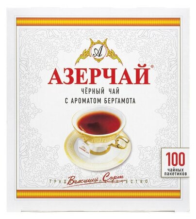 Чай азерчай черный с бергамотом, 100 пакетиков с ярлычками по 2 г, картонная коробка, 419830