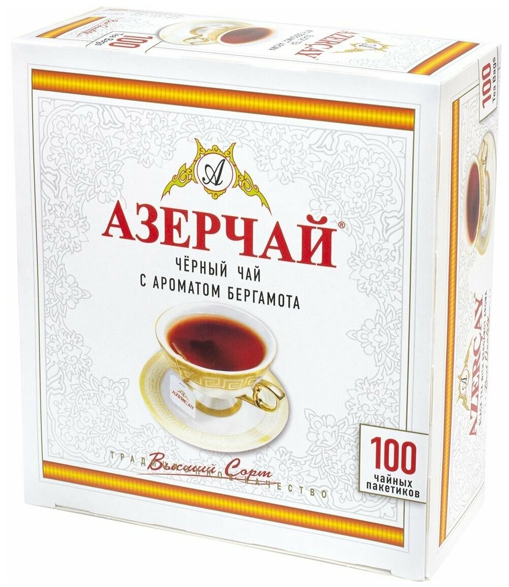 Чай азерчай черный с бергамотом, 100 пакетиков с ярлычками по 2 г, картонная коробка, 419830