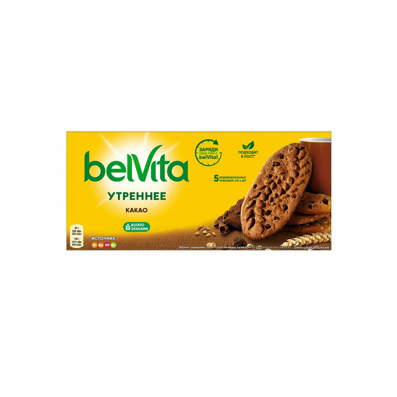 BelVita утреннее Печенье какао витаминизированное с какао, 5 индивидуальных упаковок 225г