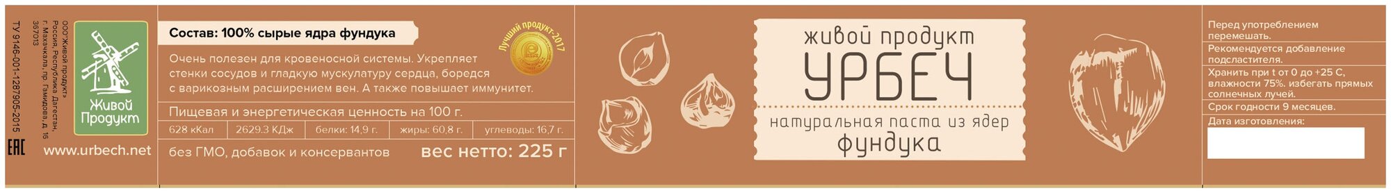 Урбеч из ядер фундука Живой продукт 225 г информация: