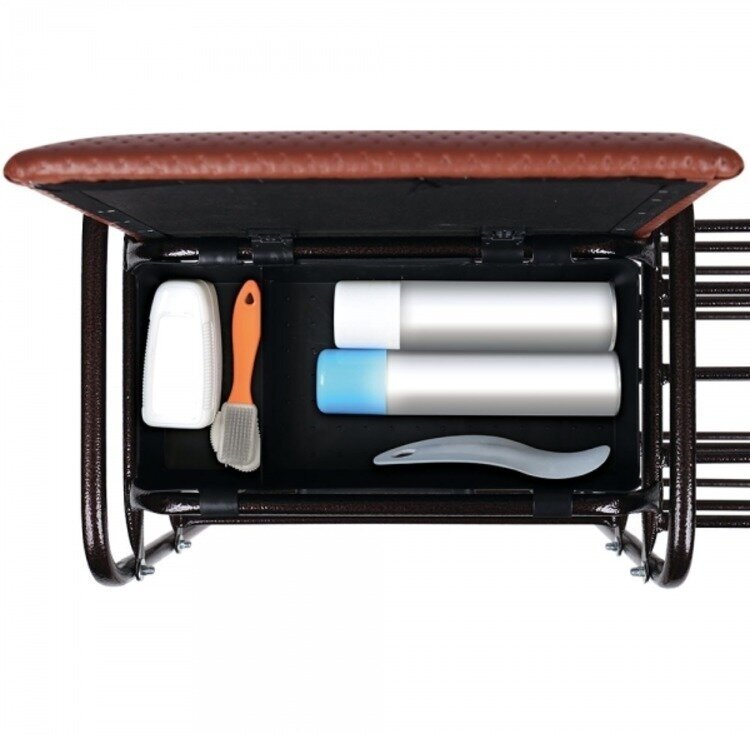 Этажерка для обуви Nika / Ника двухъярусная, с сиденьем, с ящиком металл, медный антик, 79×33×51см / обувница / товары для дома