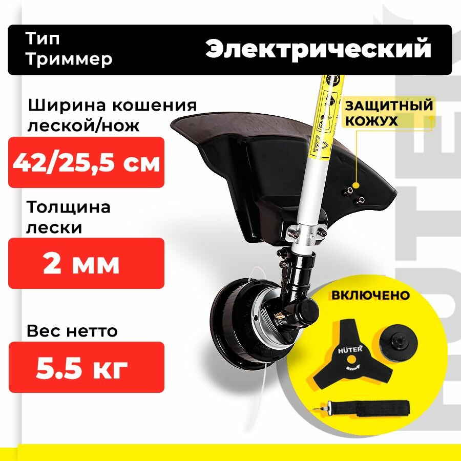 Электрический триммер Huter GET-1500SL, леска/нож, 8000 об/мин, 1.5 кВт, 220 В