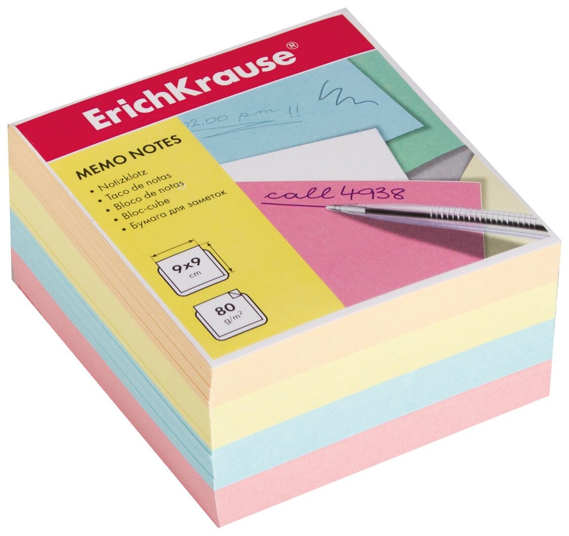 ErichKrause Блок бумаги для записей Erich Krause 9x9x5 см, цветной, плотность 80г/м2 информация: