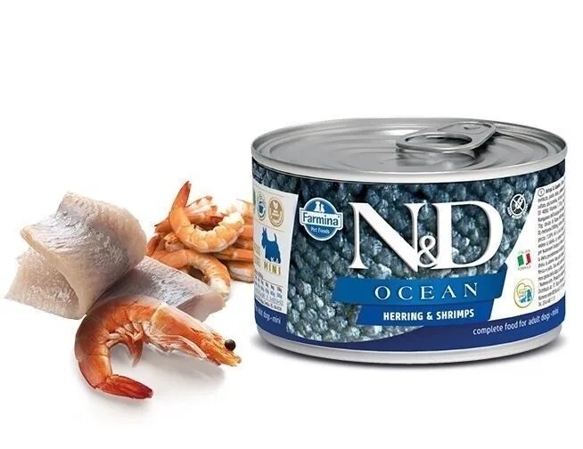 Отзывы на Фармина 02215 N&D OCEAN кон.д/собак мелких пород Сельдь с креветками 140г