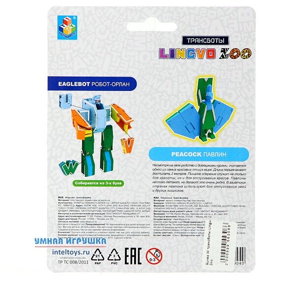 Alpha Lingvo Zoo трансбот Зообот, буква W, Павлин, 1Toy информация: