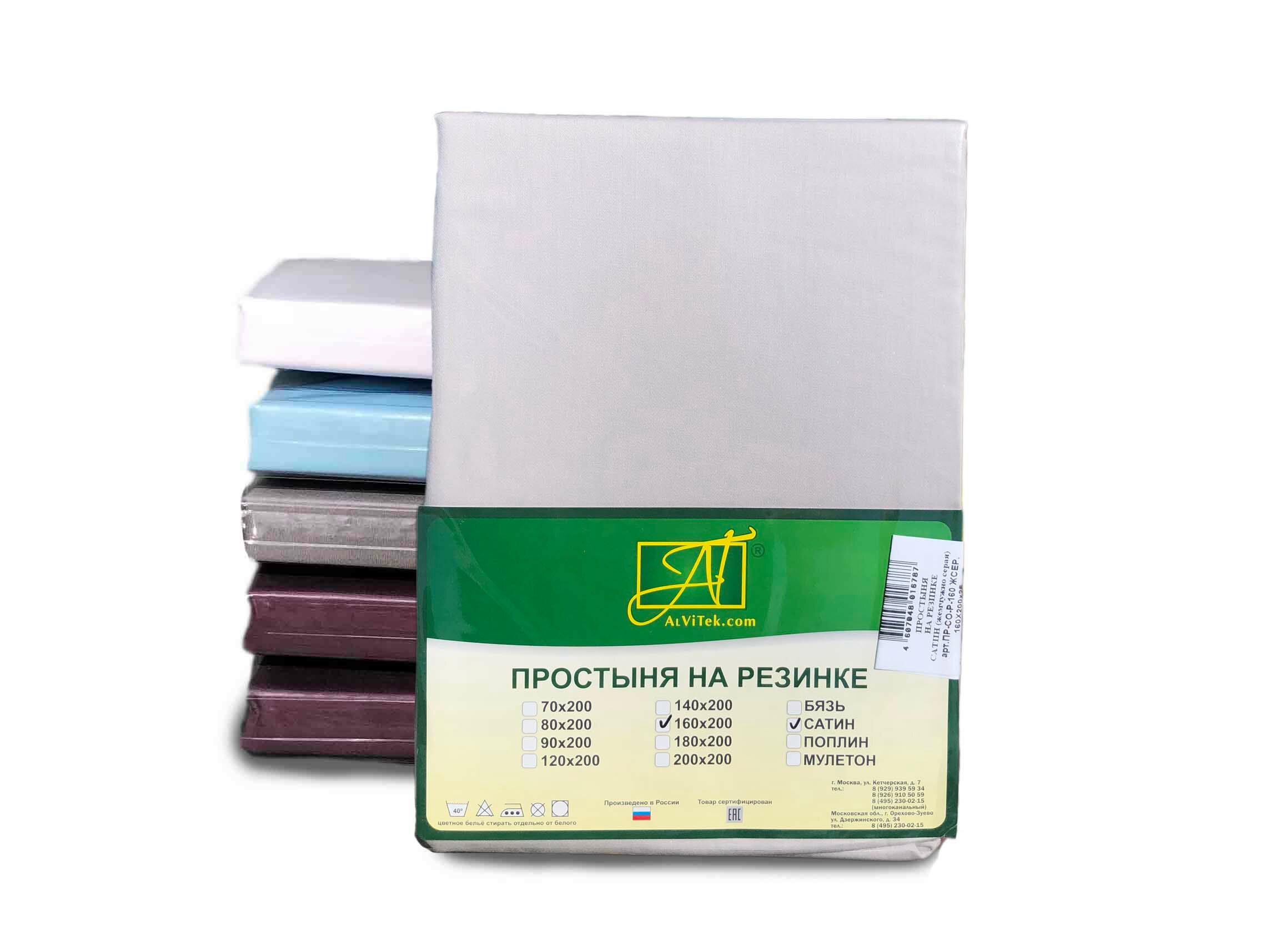 Простыня из сатина на резинке альвитек жемчужно-серая 160х200 информация: