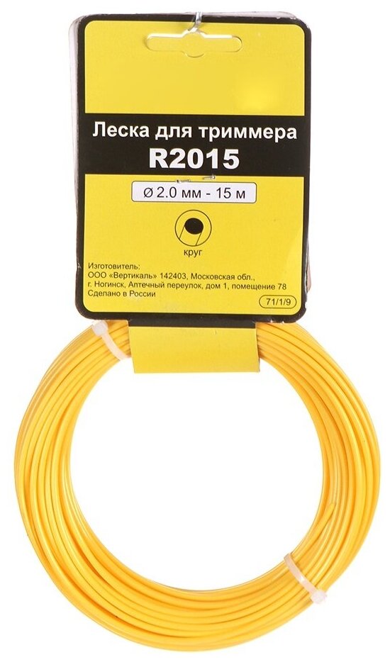 Леска HUTER R2015 круг 2.0 мм 15 м арт. 71/1/9 информация: