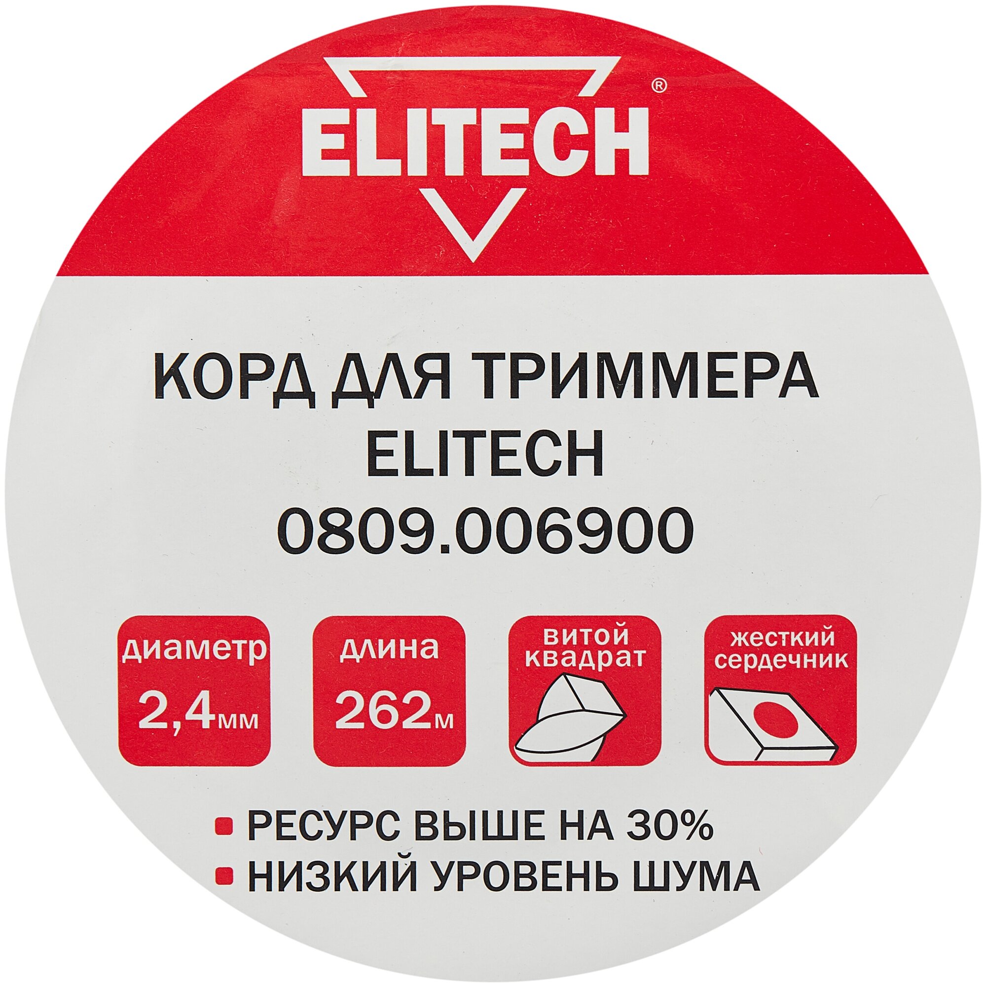 Корд для триммера Elitech 2.4 мм, 262 м, витой квадрат