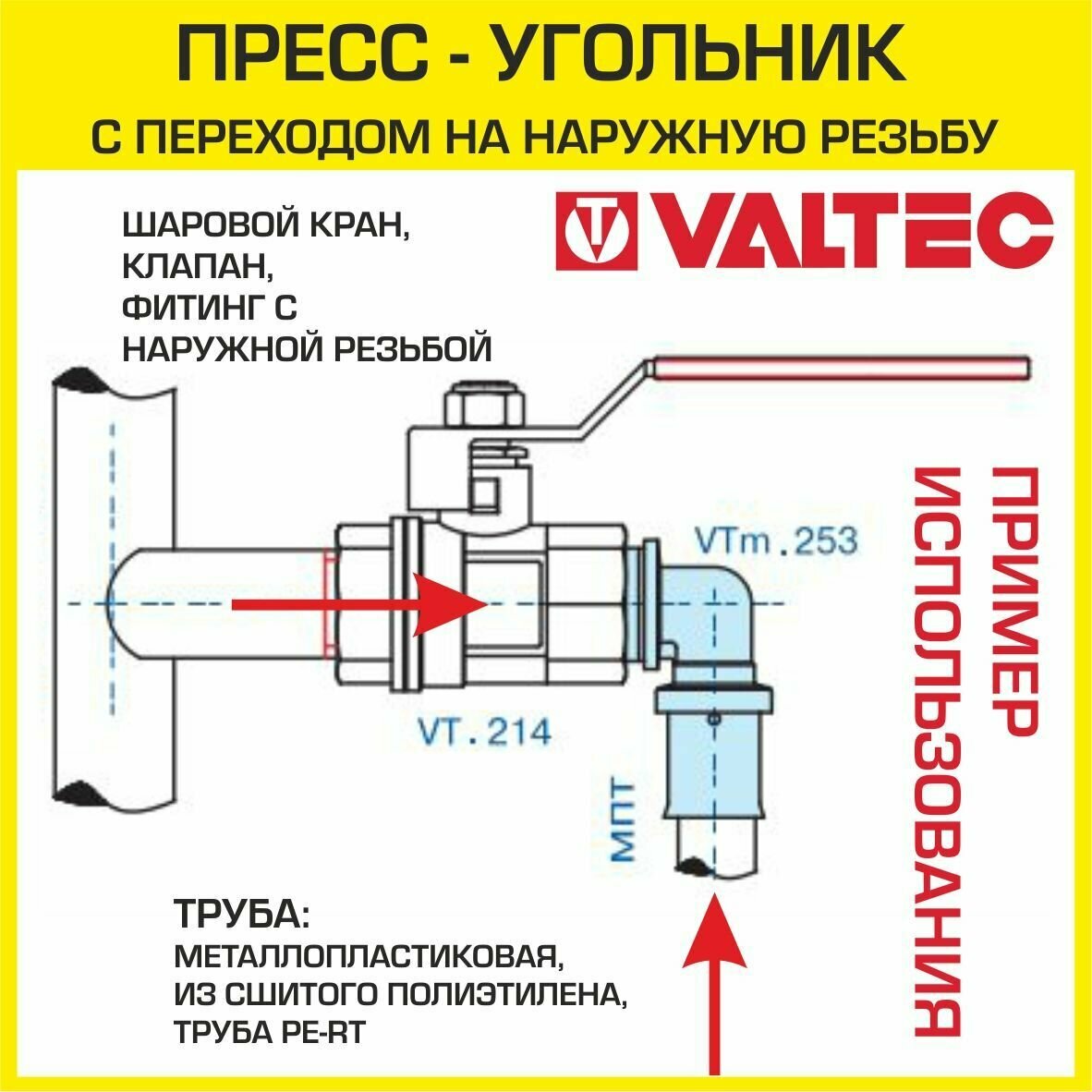 Пресс-фитинг – угольник с переходом на наружную резьбу, Valtec, VTm.253.N.003206