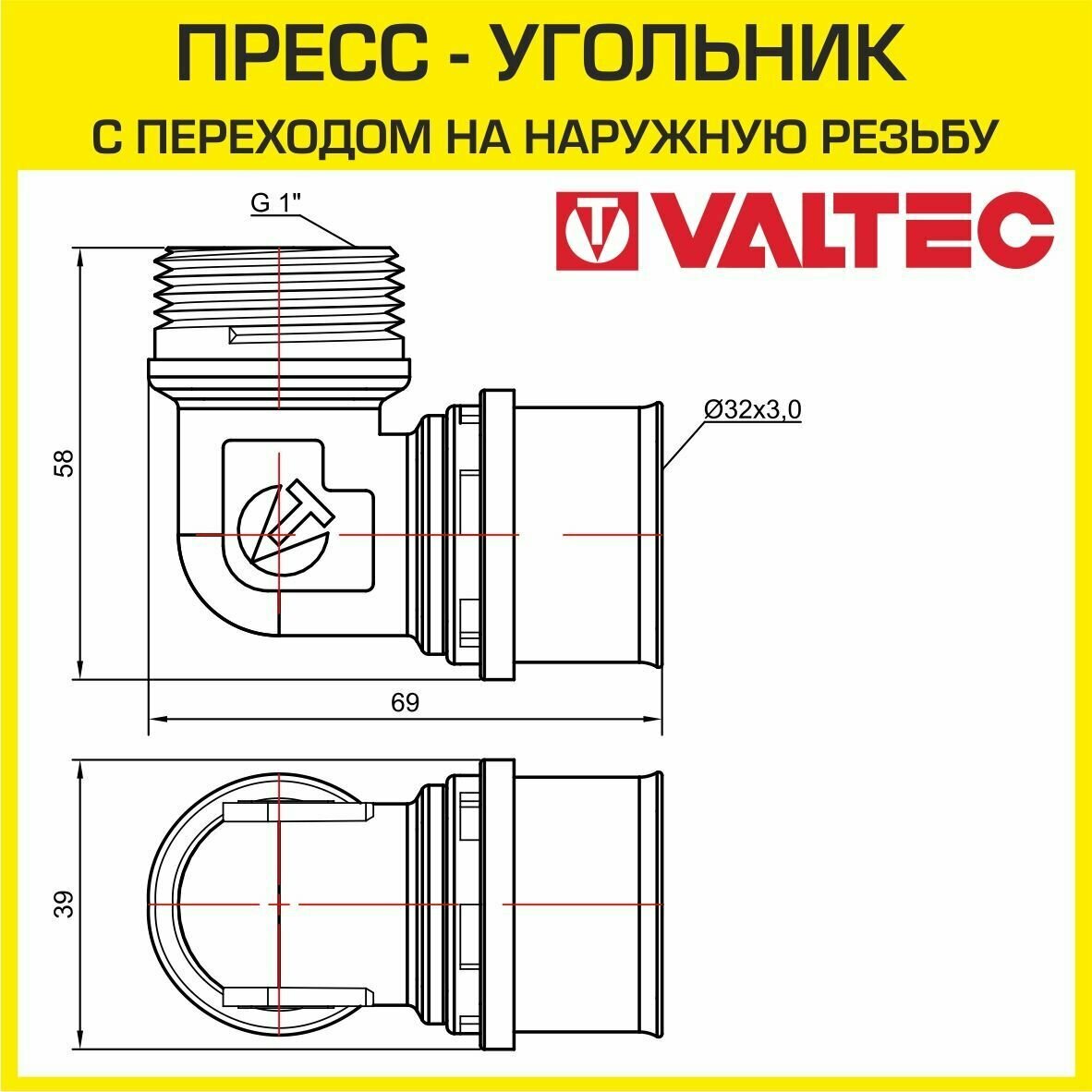 Угольник пресс VALTEC с переходом на нар. р. 32х1, VTm.253.N.003206
