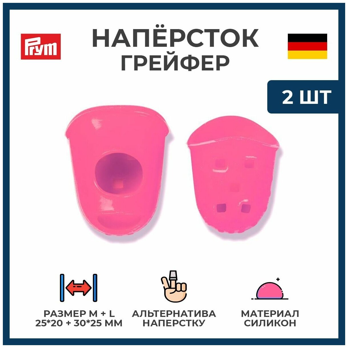 10 цен на Грейфер для иглы PRYM размеры M и L, силикон, ярко-розовые, 2 шт (PR.611103)