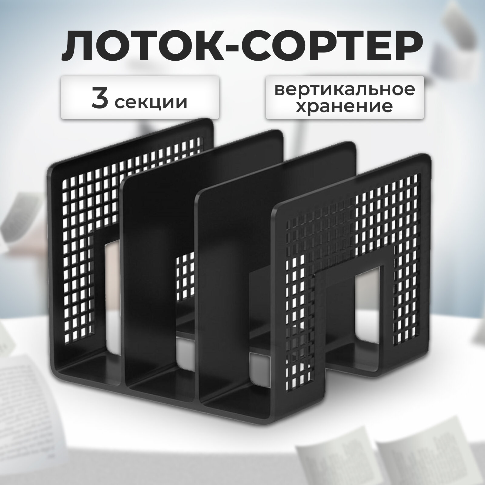Лоток-сортер для бумаг вертикальный, 3 отделения, чёрный 817 ₽