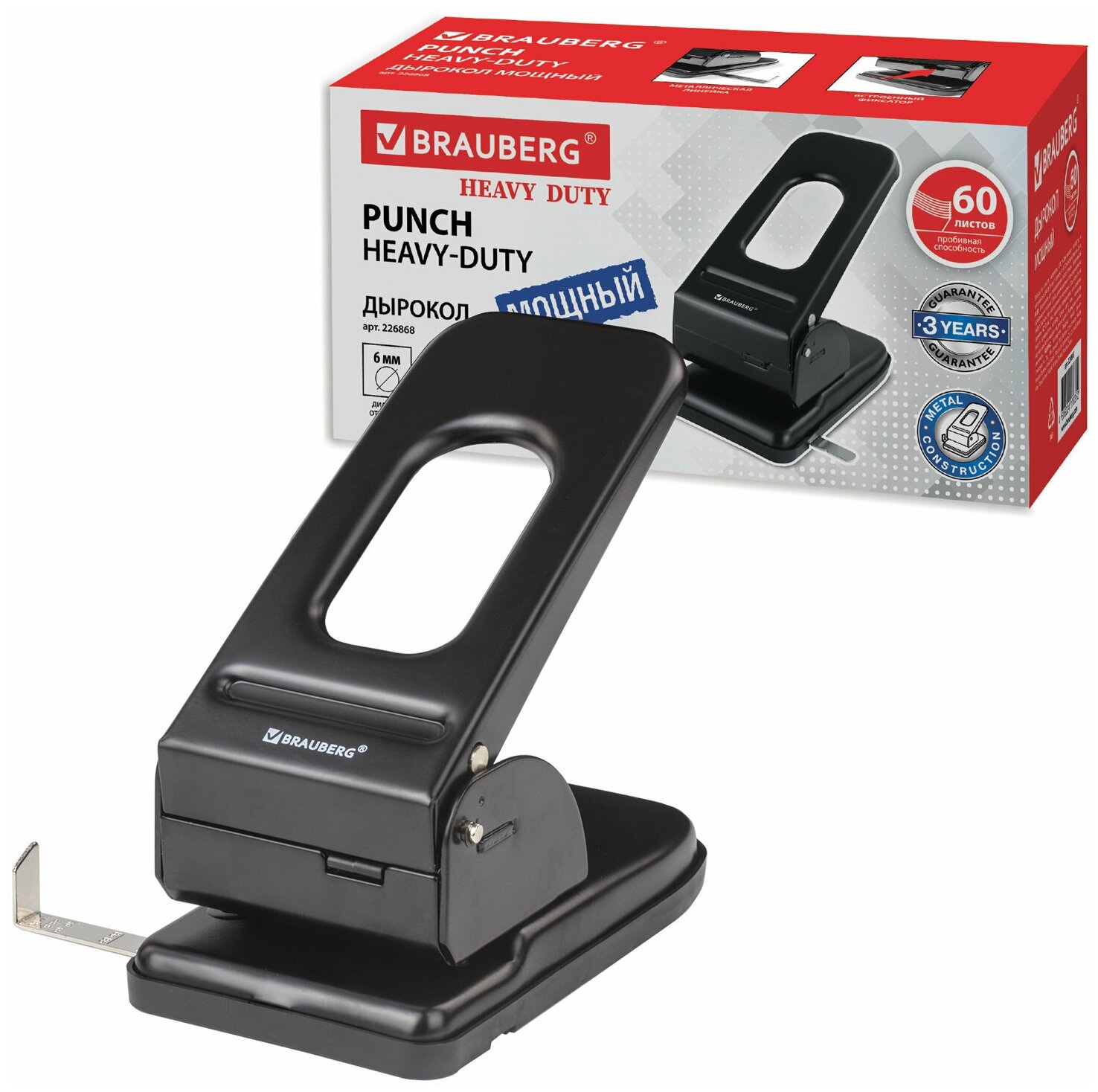Дырокол металлический мощный BRAUBERG "Heavy duty", до 60 л., черный, 226868