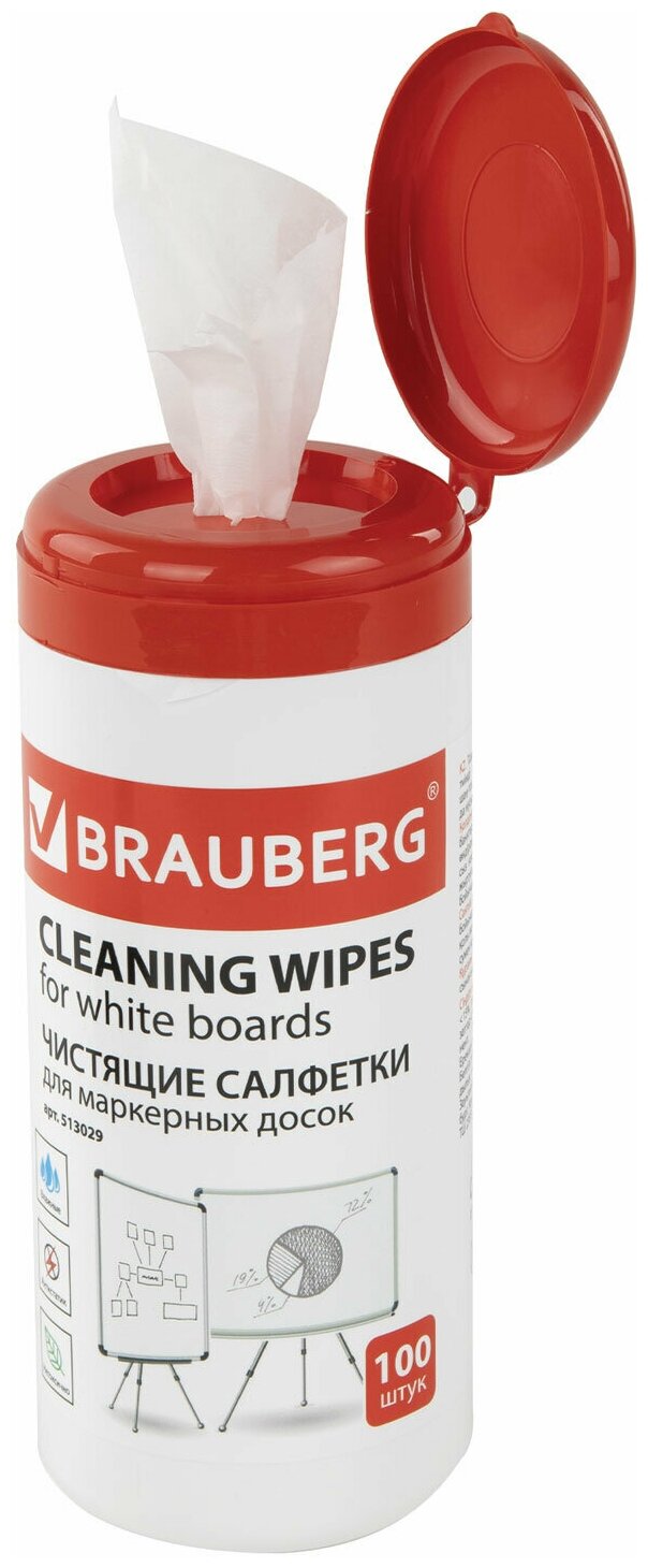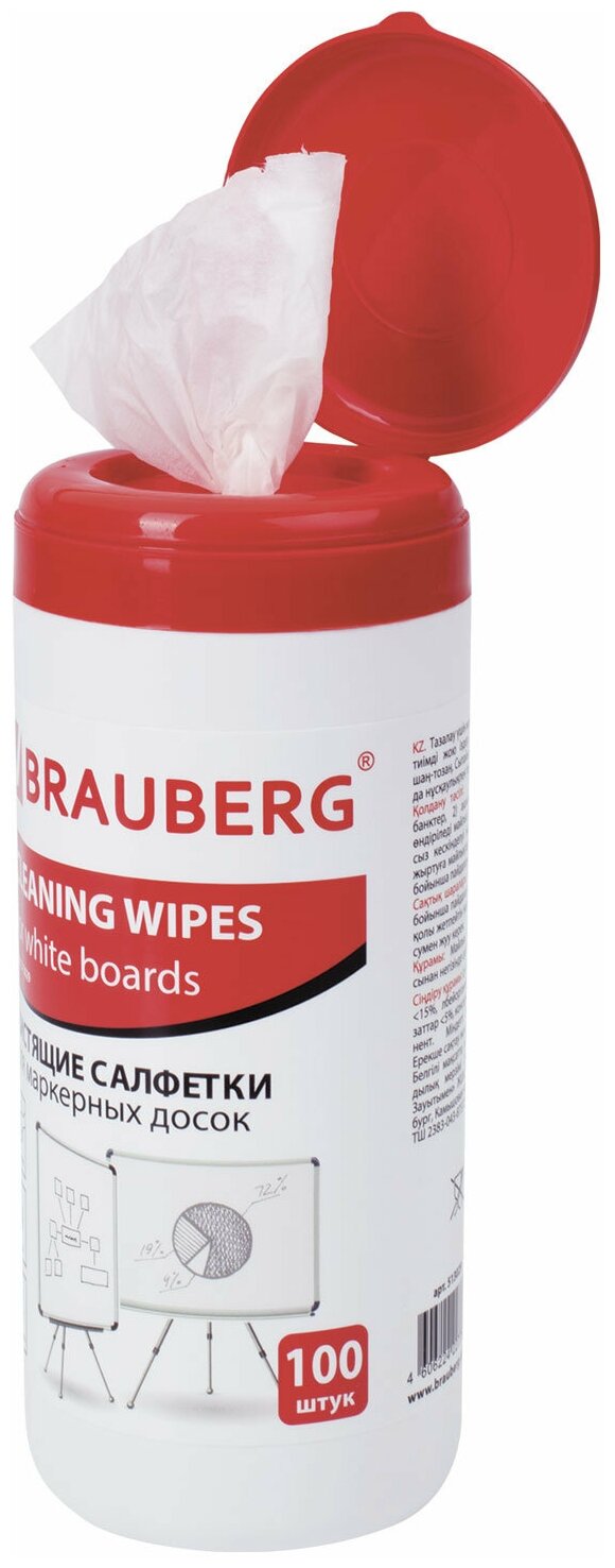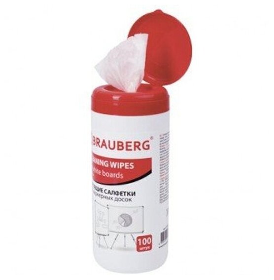 Салфетки для маркерных досок Brauberg, влажные, в тубе 100шт. информация: