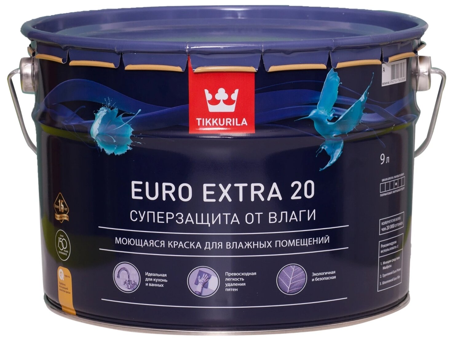 Tikkurila ВД краска интерьерная для влажных помещений EURO EXTRA 20 A полуматовая 9л информация: