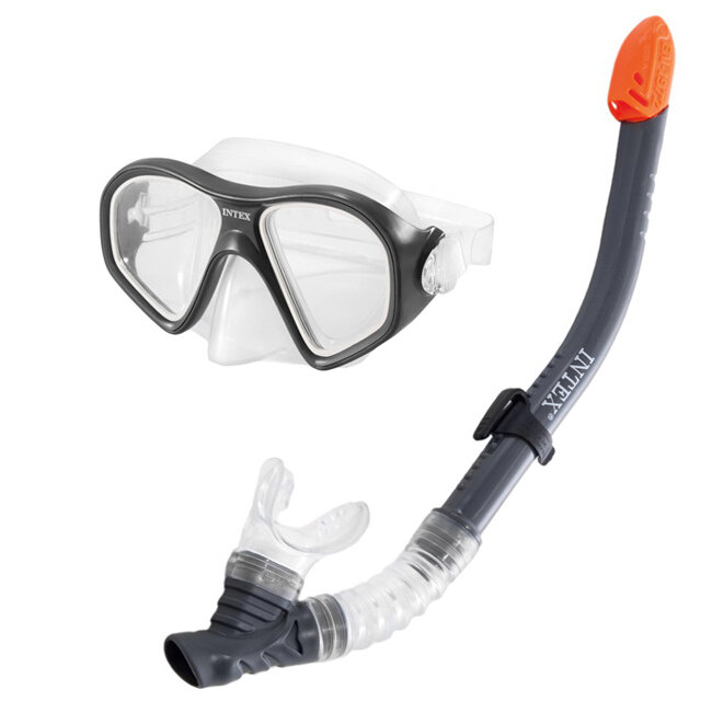 10 цен на INTEX Трубка с маской Reef Rider серая, 14+ 55648