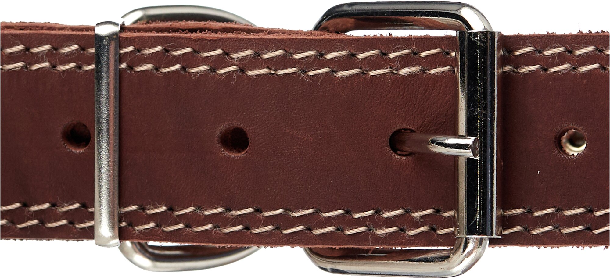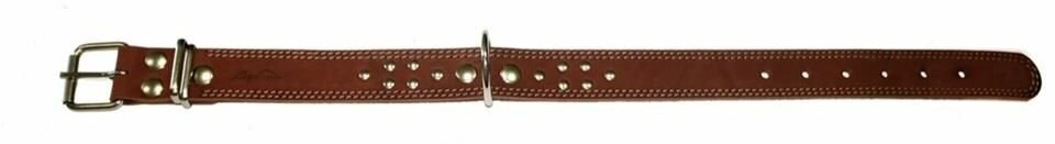 Ошейник аркон кожаный для собак однослойный, украшения, двойная строчка, коньячный (46-60 см/35 мм)