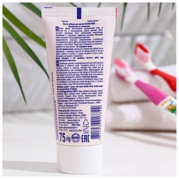 Modum Паста зубная для детей Silver dent, Клубничка со сливками, 75 г