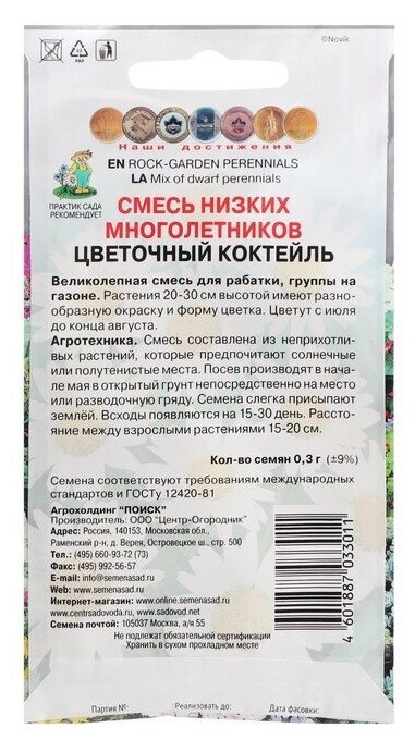 Семена цветов Смесь низких многолетников "Цветочный коктейль", 0,3 г информация: