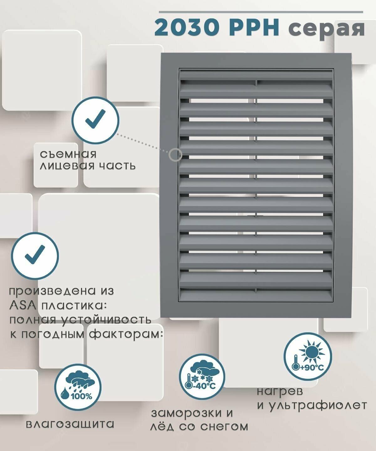 2030РРН сер Решётка вентиляционная наружная ERA Street Line 200х300(h) с рамкой, ASA пластик, серая информация: