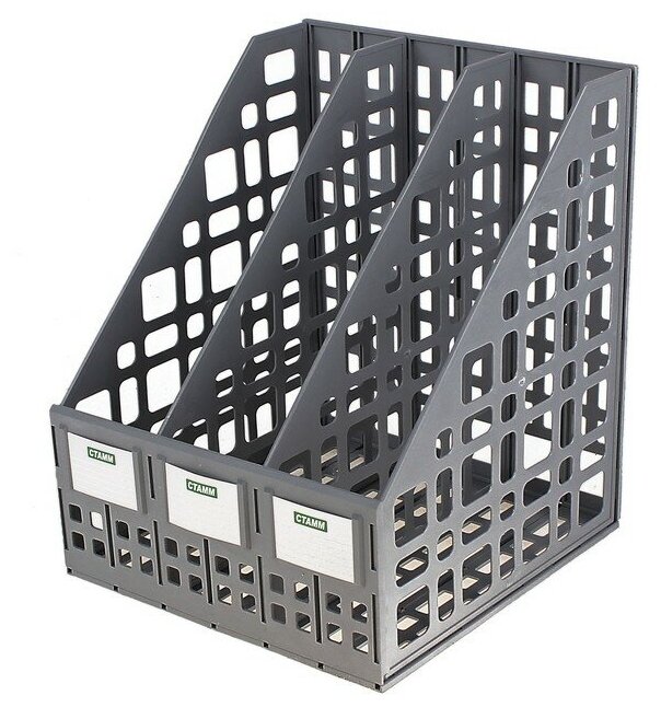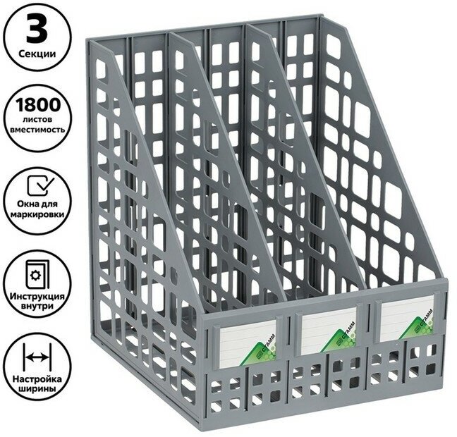 Комплект 3 шт, Подставка для журналов и бумаг СТАММ, сборная, 3 отделения, серая