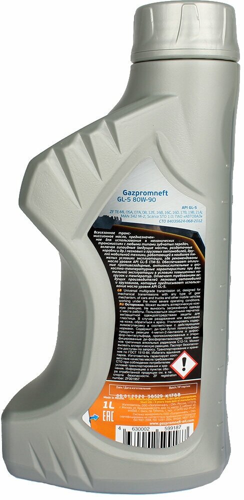 Масло трансмиссионное Газпромнефть GL-5 80W-90 80W-90, 1 л информация: