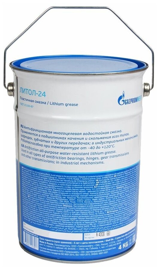 Пластичная смазка Gazpromneft Литол-24, 4 кг информация: